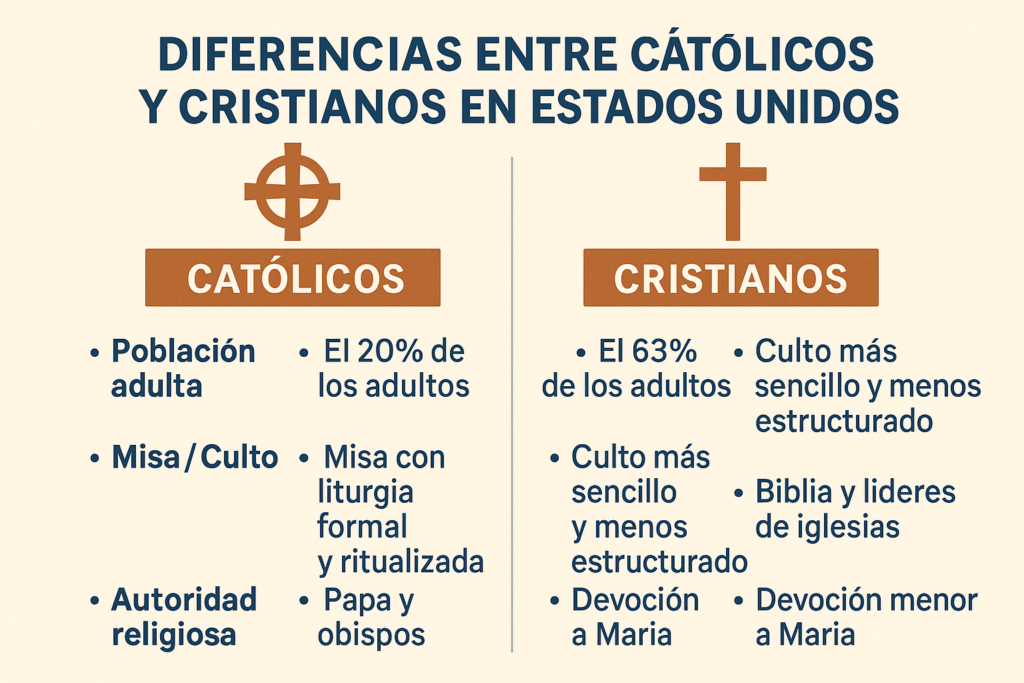 Las diferencias entre católicos y cristianos en Estados Unidos reflejan siglos de evolución teológica, cultural y social dentro del cristianismo. Aunque ambos grupos comparten la fe en Jesucristo, la Biblia y la salvación, difieren en su interpretación de la autoridad religiosa, los sacramentos, el papel de la Virgen María y la forma de vivir la fe en comunidad.
